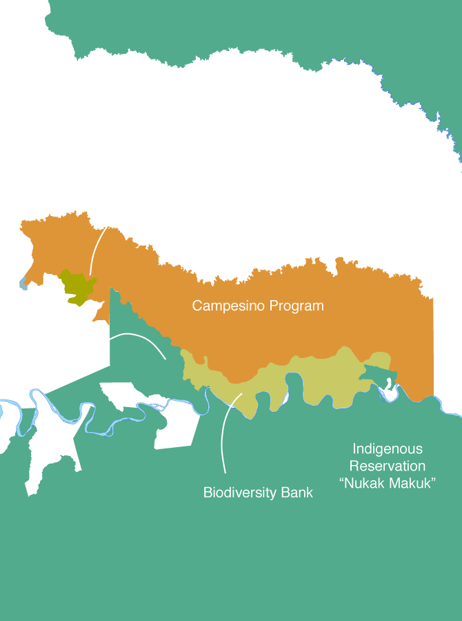 Mapiripan Project (Mapiripan, Meta) is Illegal Crops Substitution Program and deforestation strategy, giving opportunities to local communities, conserving the biodiversity and working with indigenous communities (eg. Nukak Maku)